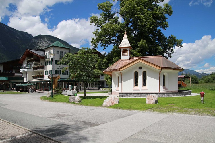 Aus vielerlei Gründen haben wir neben unserer 350 Jahre alten Sommerlinde eine kleine Kapelle errichtet. Diese ist für ca. 20 Personen ausgelegt und soll offen und einsichtig für Interessierte sein. Hier führt auch der Jakobsweg auf seiner Abzweigung nach Maria Kirchental vorbei. Der Freibrunnen soll Wanderer und Radfahrer erfrischen und zum Verweilen einladen. Es möge ein Ensemble sein, welches mit dem Kirchlein, dem Brunnen und der Linde ein harmonisches Bild ergibt. Als Schutzheiliger wurde der Heilige Christophorus gewählt, der als Schutzheiliger der Autofahrer und Reisenden bekannt ist.