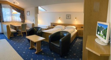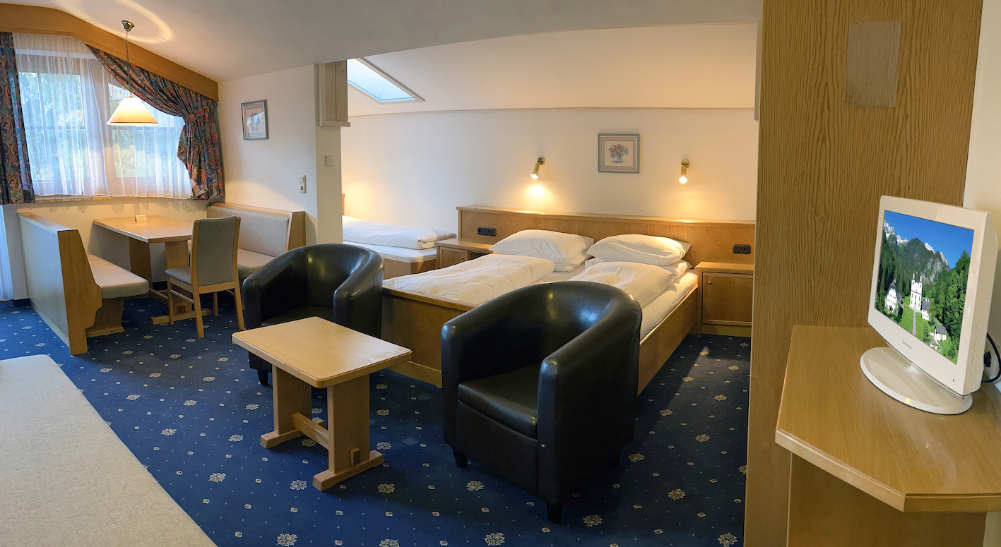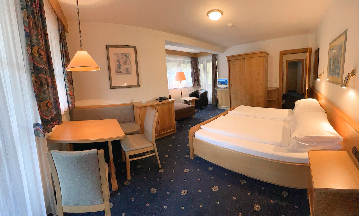 In unserem modern und doch gemütlich eingerichteten Juniorsuiten finden 2-4 Personen Platz, wobei zum Teil getrennte Kinderzimmer möglich sind. Großzügiges Wohnen speziell für Ihren Familienurlaub! Weiters sind die Junior Suiten ausgestattet mit Bad/WC, Föhn, SAT HD Hotel TV, SKY-Sport, Zimmersafe und einem eigenen Balkon.